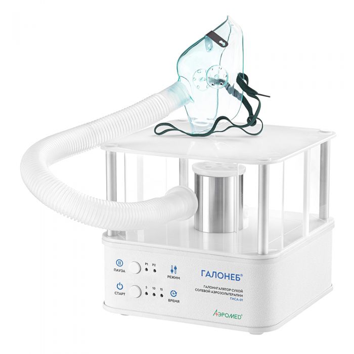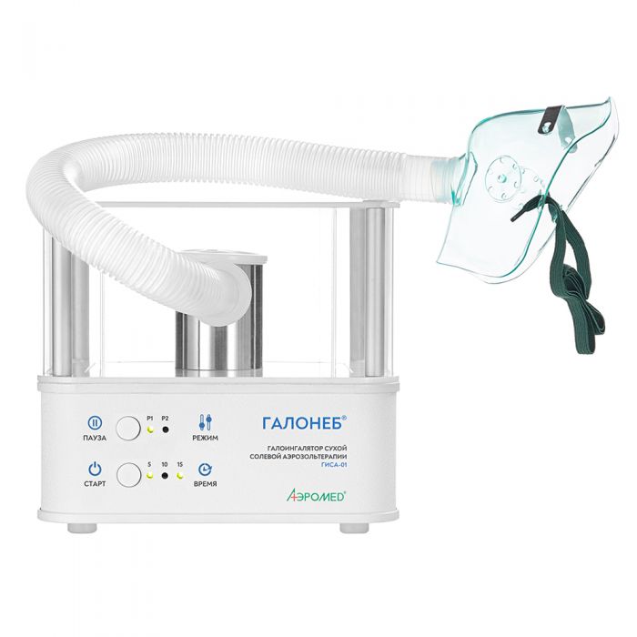 Галоингалятор ГИСА-01 (Галонеб) является модернизированной версией первого выпуска ГИСА-01 и предназначен для проведения галоингаляционной терапии органов дыхания с помощью сухого высокодисперсного аэрозоля хлорида натрия, моделирующего лечебный микроклимат соляной пещеры. По мере вдыхания соляного аэрозоля, который формируется внутри аппарата, мельчайшие частицы соли, обладающие отрицательным зарядом, оседают на стенках органов дыхания. Благодаря уникальным физико-химическим свойствам сухого солевого аэрозоля, в организме пациента запускаются естественные процессы очищения, восстановления и защиты органов дыхания, за счёт следующих действий аэрозоля: